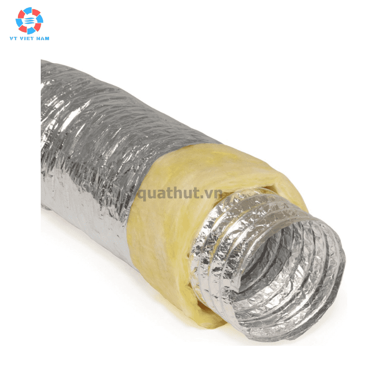 Ống gió mềm bảo ôn D300 bông thường là loại ống thông gió được sản xuất từ nhiều lớp nhôm gắn với dây thép tăng cường. Ống kín gió có tính đàn hồi và dẻo dai nên có thể uốn cong hay gấp khúc. Ở giữa là lớp bông thuỷ tinh cách nhiệt.