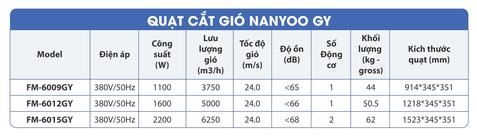 Quạt cắt gió công nghiệp Nanyoo FM-6012GY được sử dụng để cắt gió cho nhà xưởng, khu công nghiệp, trung tâm thương mại ... nhưng nơi có khoảng cách cần cắt cao.
