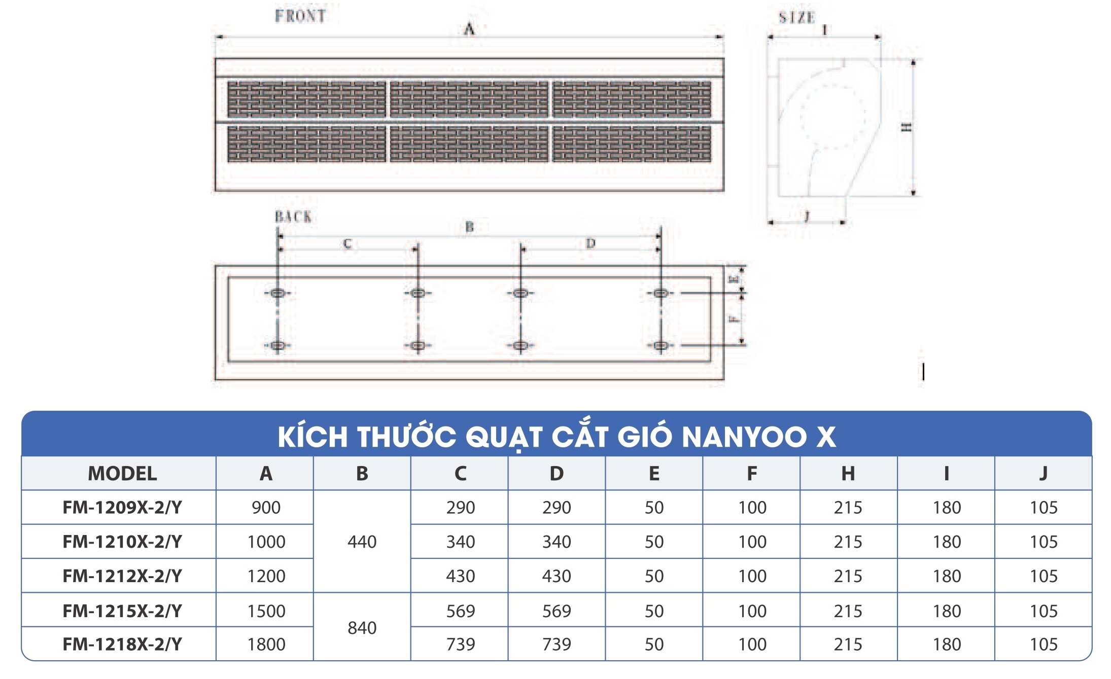 Quạt cắt gió Nanyoo FM-1212X-2/Y là quạt chắn gió hay còn gọi là rèm gió. Quạt cắt gió FM-1212X-2/Y của Nanyoo được sử dụng để cắt gió nhà hàng, siêu thi, văn phòng, nhà ở ... những nơi yêu cầu độ cao cắt thấp dưới 2.5m