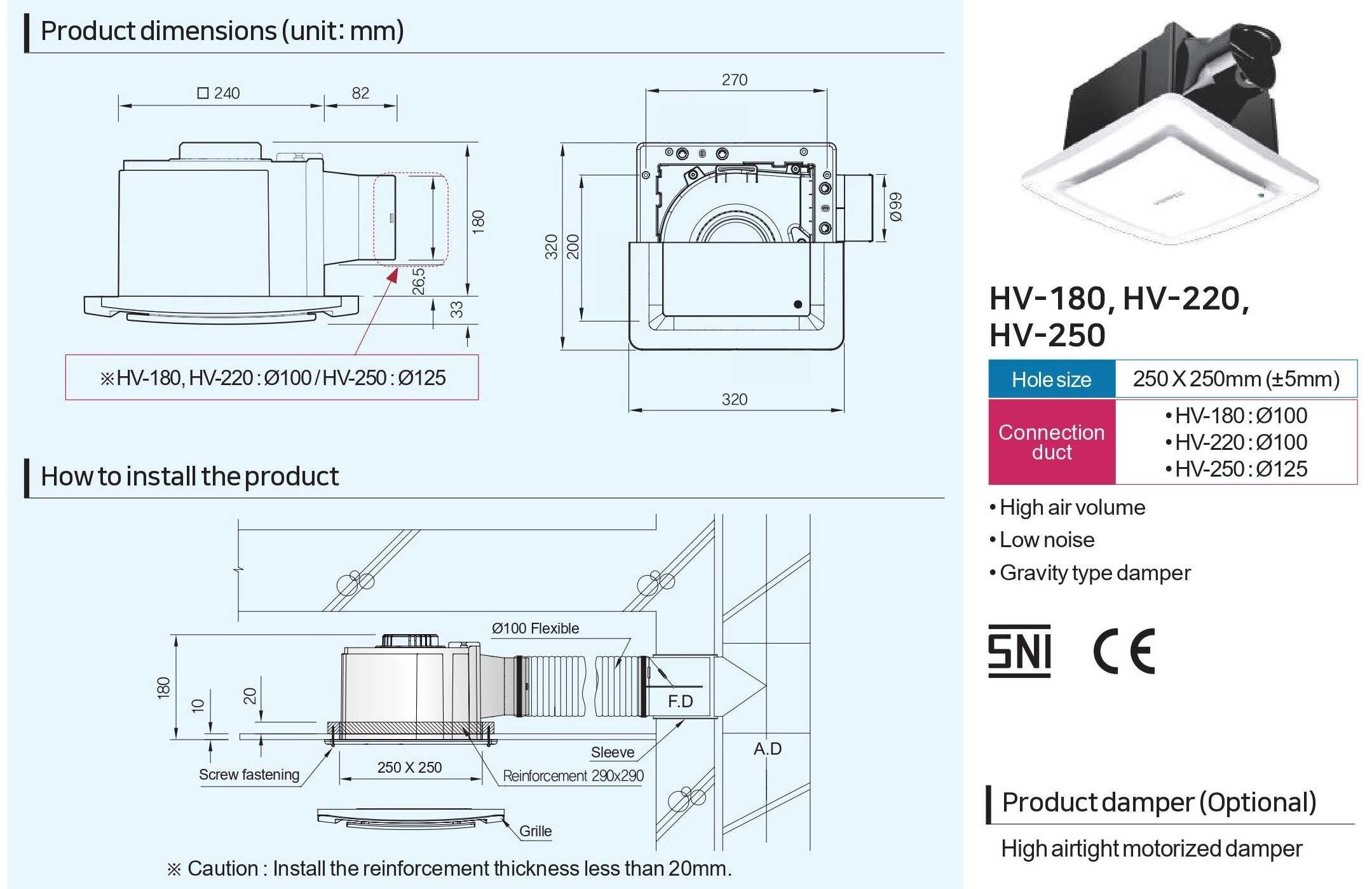 Quạt hút âm trần HIMPEL HV-180 là dòng sản phẩm quạt thông gió âm trần nối ống sử dụng cho các không gian tĩnh như phòng khách, phòng ngủ, hành lang, nhà bếp, nhà vệ sinh...với thiết kế sang trọng, chạy cực êm độ ồn thấp thiết bị đáp ứng được nhu cầu thông gió, hút mùi, hút ẩm, hút nhiệt... đảm bảo hiệu quả.