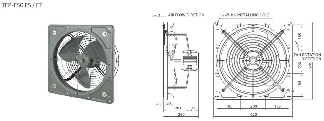 Quạt hút gắn tường FANZIC TFP-F50ES là dòng sản phẩm quạt thông gió gắn tường sử dụng cho các không gian tĩnh như cầu thang, nhà kho, nhà xưởng, gara ô tô, nhà hàng, khu vực không gian mở...với thiết kế khung sắt được sơn tĩnh điện, mặt trước có lưới bảo vệ an toàn trong quá trình sử dụng.