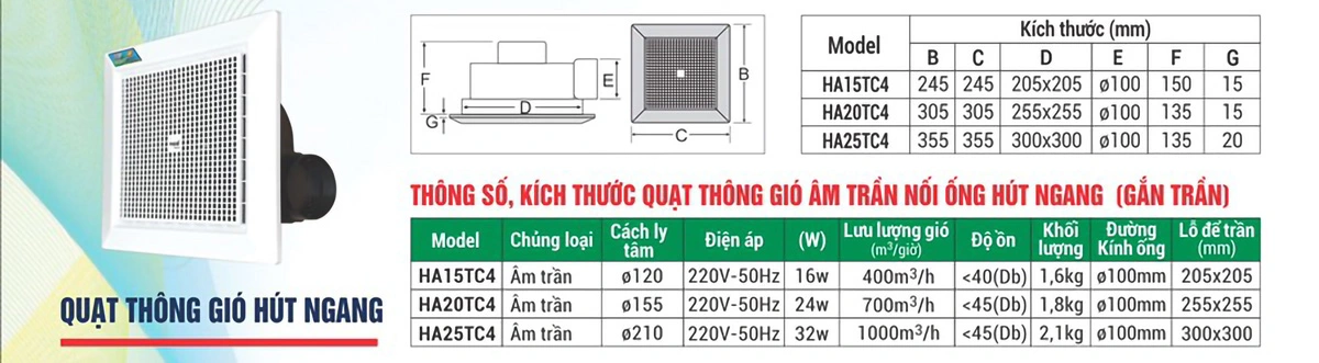 Quạt hút trần Tico Luxury HA15TC4 là loại quạt thông gió âm trần nối ống hút mùi, khí thải, mùi ẩm mốc...tạo luân chuyển không khí hiệu quả. Sản phẩm thích hợp cho nhà ở, văn phòng, nhà bếp.