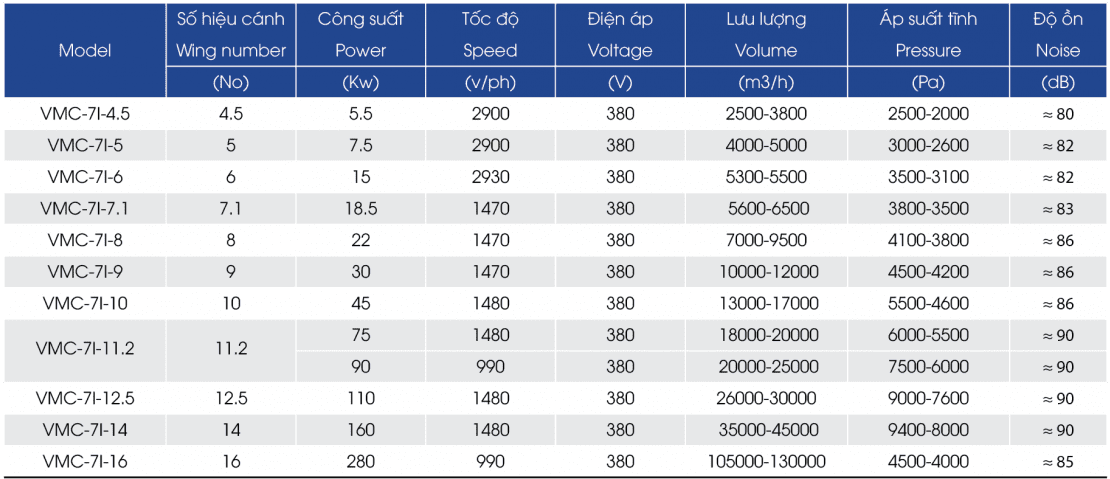 Cánh quạt được cấu tạo đặc biệt duy trì hoạt động liên tục trong môi trường nhiệt lớn, tính ăn mòn cao, giảm độ rung lắc trong vận hành.
