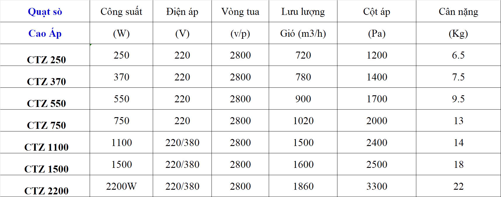 Quạt sò ly tâm cao áp CTZ 370 hay còn gọi là quạt thổi con sò là dòng sản phẩm có áp lực gió cực lớn, lưu lượng và cột áp phù hợp với điều kiện sử dụng cần áp suất cao. Sản phẩm thích hợp sử dụng cho hệ thống tạo áp cao như cho cầu trượt hơi, cổng chào, thổi lò sấy, thổi ống,…