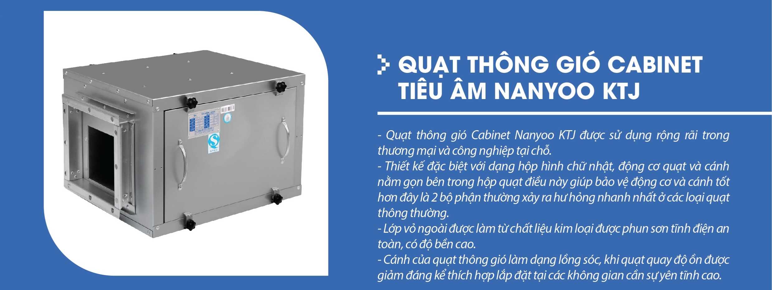 Quạt thông gió cabinet tiêu âm Nanyoo KTJ23-32D là loại quạt thông gió dạng hộp sử dụng cánh ly tâm có công suất lớn độ ồn thấp. Quạt được tích hợp tiêu âm sử dụng với hệ thống ông gió chuyên dùng hút khí thải, thông gió cho nhà nhà vệ sinh, văn phòng, phòng ngủ, cấp khí tươi cho văn phòng, khách sạn.