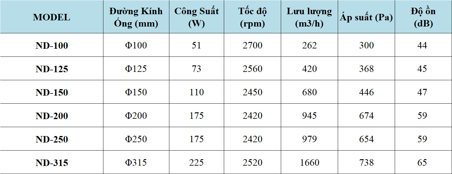 Quạt có thể chịu được áp suất cao và có thể hoạt động trong đường ống dài với độ ồn thấp.