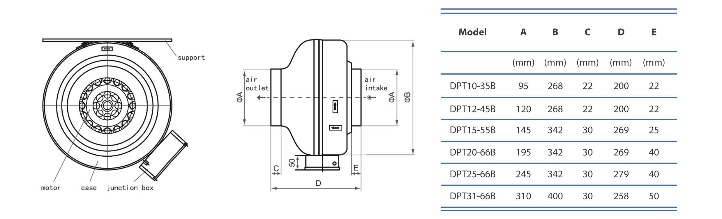 Quạt thông gió nối ống Nanyoo DPT31-66B là mẫu quạt hút ly tâm nối ống gió rất được ưa chuộng. Quạt thông gió DPT31-66B thiết kế rất chắc chắn, độ bền cao nhờ được phủ sơn tĩnh điện có tính chất chống ăn mòn mạnh, không bị gỉ sét.