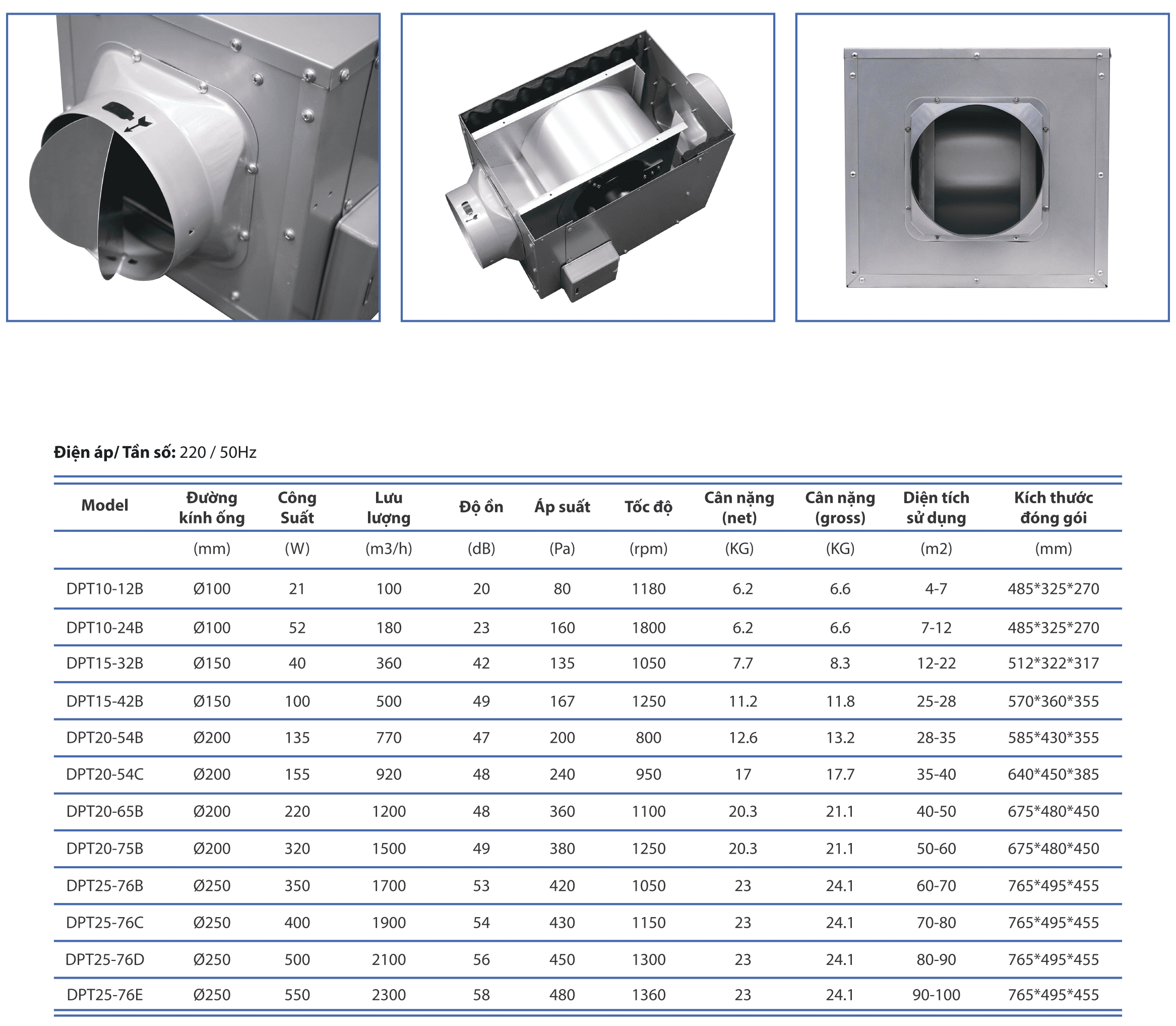 - Chuyên dùng để lắp nối ống âm trần phục vụ thông gió tòa nhà, văn phòng, trung tâm thương mại, hút khí thải, khí tươi cho điều hòa trung tâm và những nơi cần lực hút khỏe, độ ồn thấp.