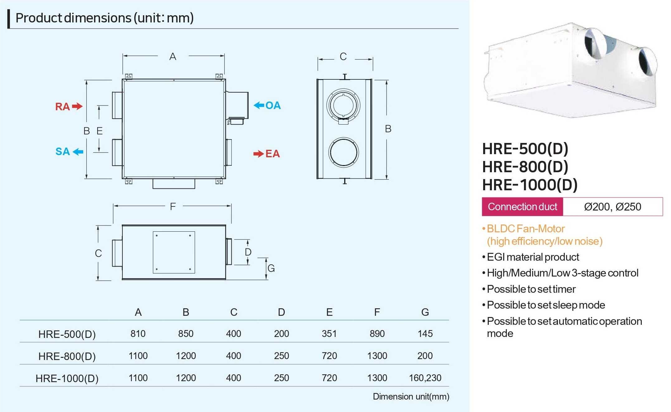 Quạt thông gió thu hồi nhiệt HIMPEL HRE-500(D) là thiết bi thông gió, lọc không khí và thu hồi lượng nhiệt bị mất trong quá trình thông gió. Sản phẩm hạn chế sự thay đổi nhiệt độ phòng do thông gió gây ra, do đó luôn duy trì được môi trường không khí chất lượng cao trong nhà.