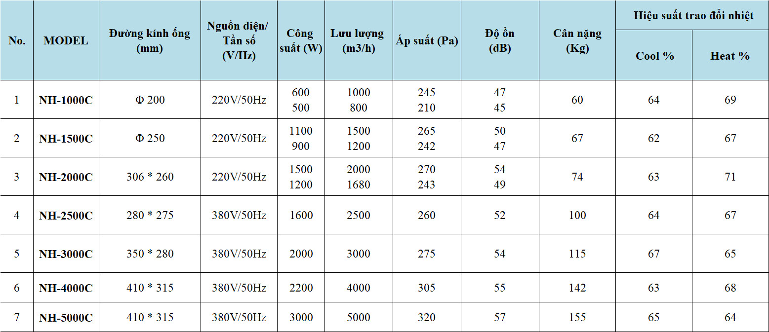 Tỉ lệ thu hồi nhiệt : 64-69%
