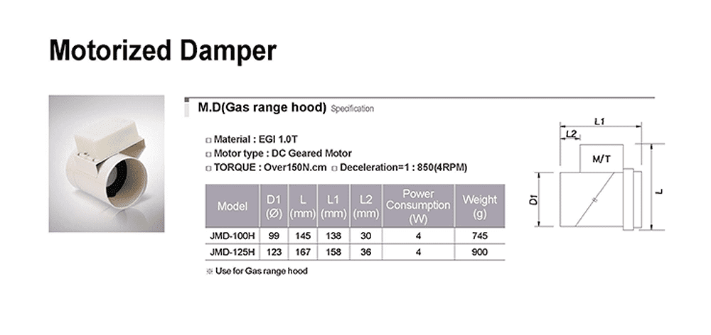Van điều tiết chống trào ngược JMD-125 là van gió điều khiển bằng điện có xuất xứ từ Hàn Quốc.